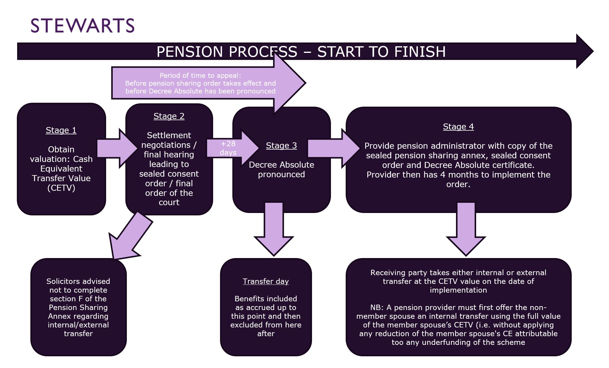 For several reasons, including arguments over detailed drafting points, the finalised order was a long time coming and was not sealed until May 2016, seven months after the final hearing. In that time, neither party had applied for the decree absolute, meaning that stage 3 of the pension process diagram above was not reached.