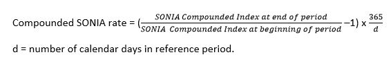 The compounded SONIA rate would only require two rate inputs, namely, the compounded index rate at the beginning and end of the reference period: